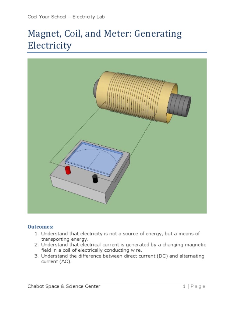 Cool Your School – Electricity Lab Chabot Space & Science Center 1 | Page Magnet, Coil, and Meter: Generating Electricity Outcomes: 1. ... View Doc